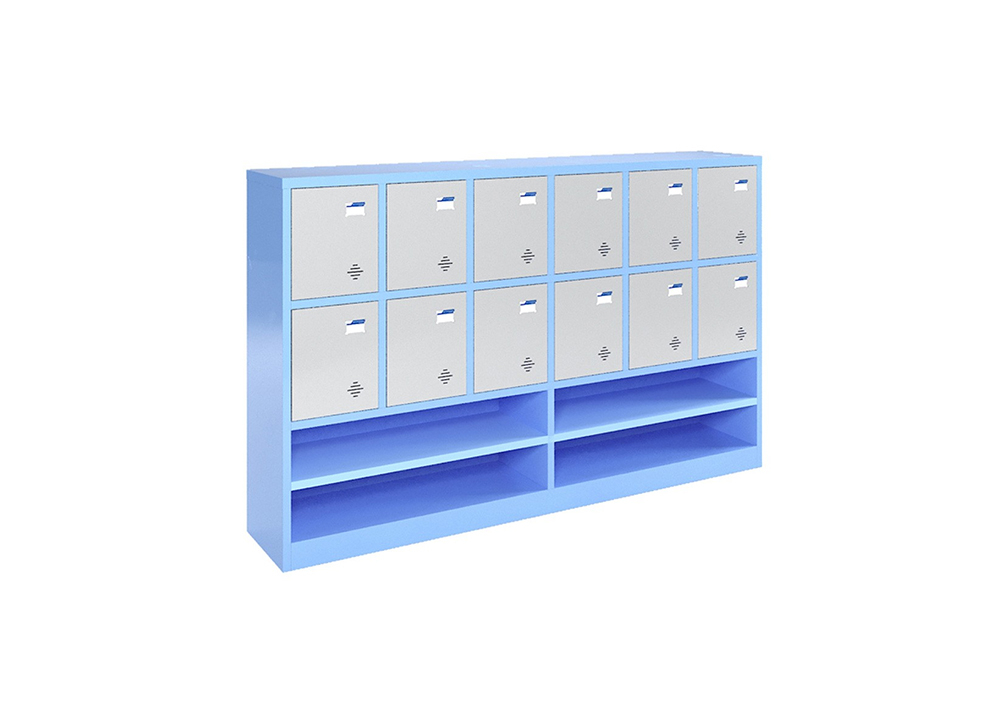 Tủ sắt sơn tĩnh điện có 12 cánh mở phía trên, phía dưới có ngăn trống để giày dép