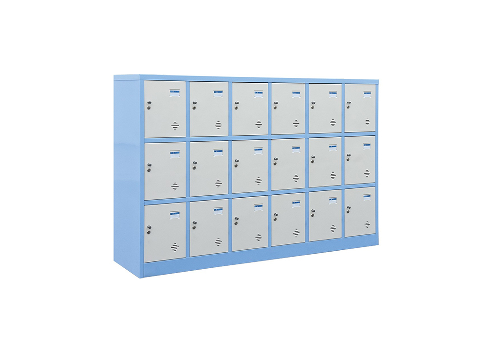 • Tủ sắt sơn tĩnh điện 18 khoang cánh mở, kích thước phù hợp cho đối tượng học sinh mẫu giáo, tiểu học. Trên mỗi cánh có 1 khóa locker và 1 núm tay nắm.