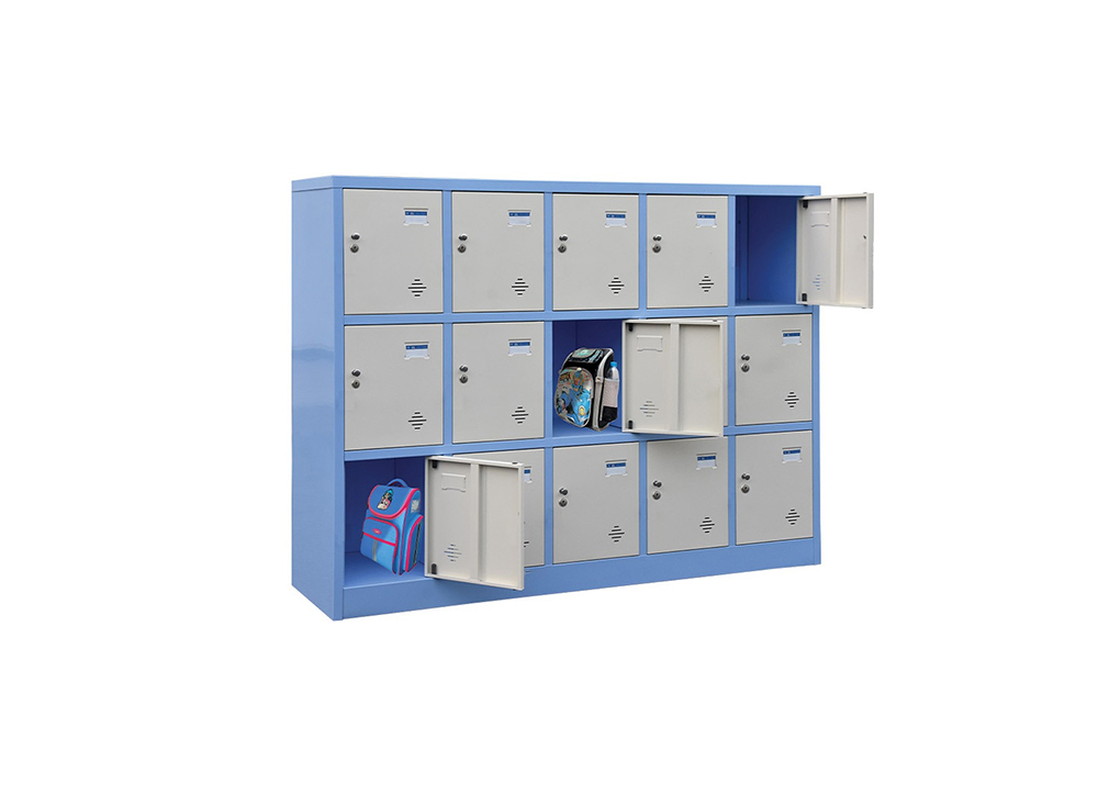 Tủ sắt sơn tĩnh điện 15 khoang cánh mở, kích thước phù hợp cho đối tượng học sinh mẫu giáo, tiểu học. Trên mỗi cánh có 1 khóa locker và 1 núm tay nắm