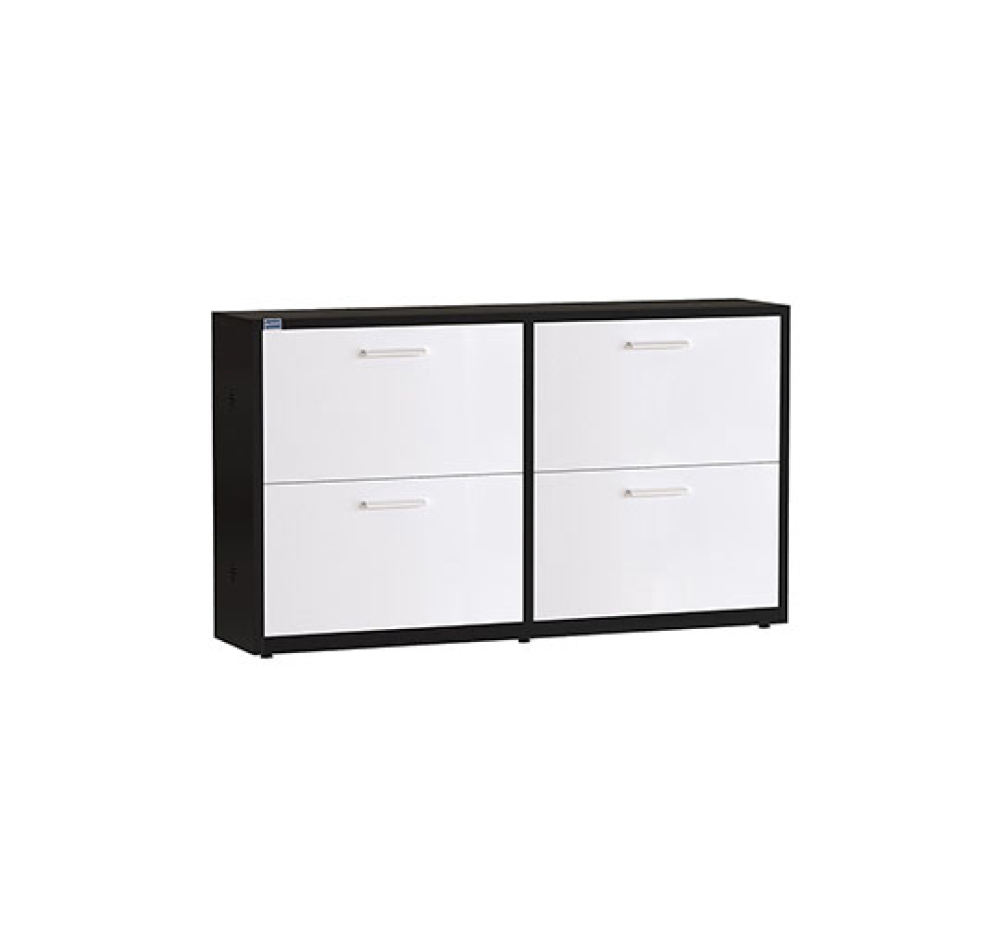 Tủ để giầy có 2 khoang, mỗi khoang có 2 ngăn kéo xoay. Bên trong mỗi ngăn lật có 1 đợt chia hai tầng để giầy