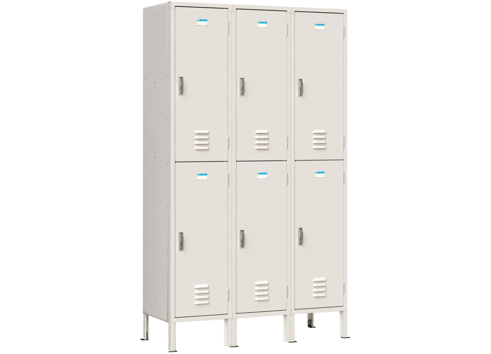 Tủ sắt sơn tĩnh điện màu trắng ngà. Tủ có 6 khoang cánh mở, bên trong mỗi khoang 3 móc treo áo đơn, 1 móc treo áo đôi. Cánh sử dụng tay nắm cao cấp kèm hệ thống thanh khóa tự sập khi đóng