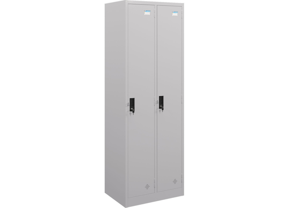 Tủ sắt sơn tĩnh điện 2 khoang cánh mở, bên trong mỗi khoang có 1 đợt cố định và 1 suốt treo quần áo.