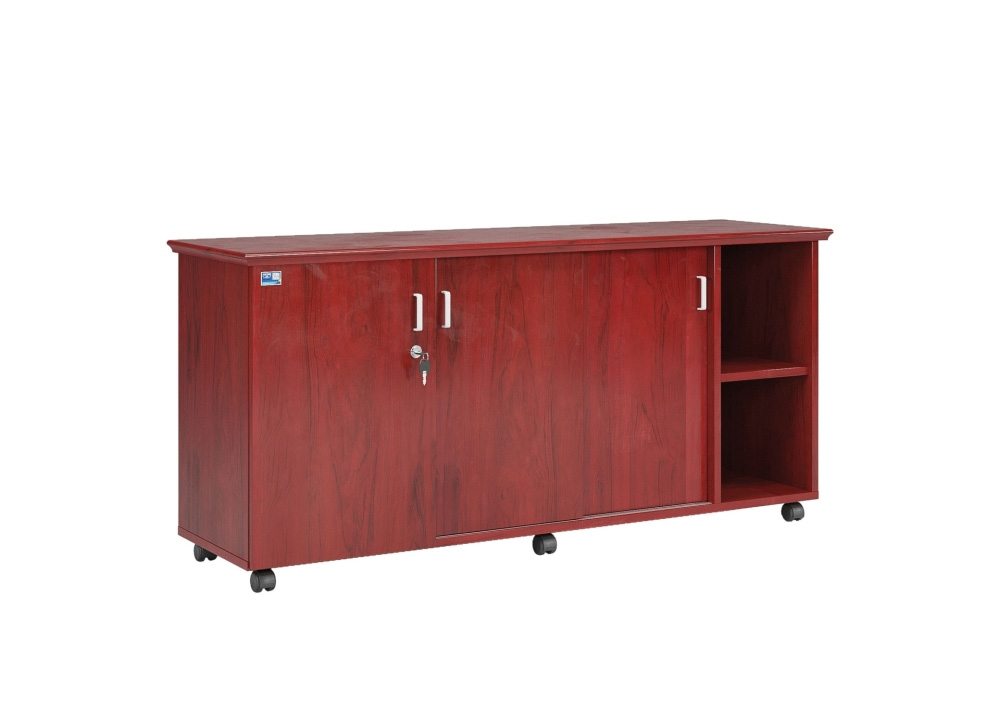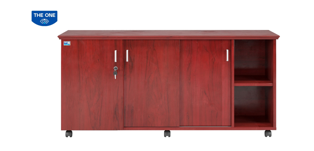 Tủ phụ di động gỗ sơn Pu có 1 cánh mở bên ngoài cùng, ở giữa có khoang cánh lùa và 1 khoang để tài liệu có đợt di động.
