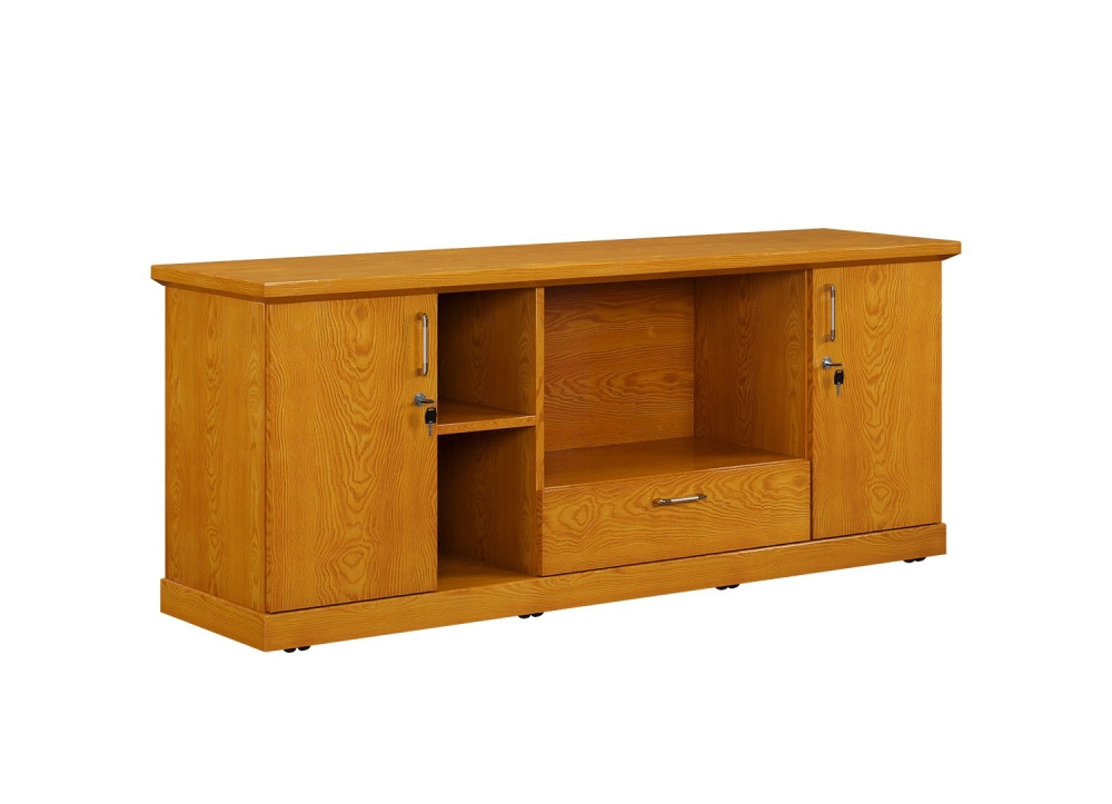 Tủ có 2 cánh mở, ngăn kéo và khoang để tài liệu.
