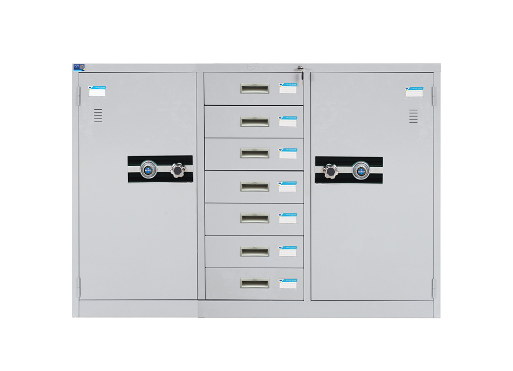 Tủ sắt sơn tĩnh điện 3 khoang: hai khoang bên ngoài mỗi khoang có 1 khóa mã, 2 đợt di động.