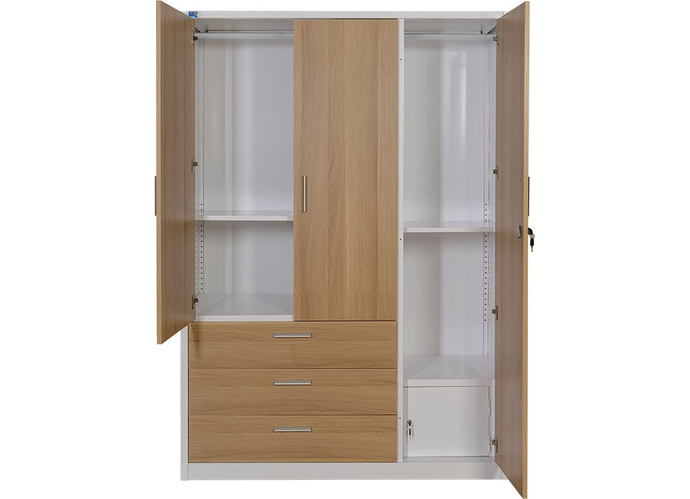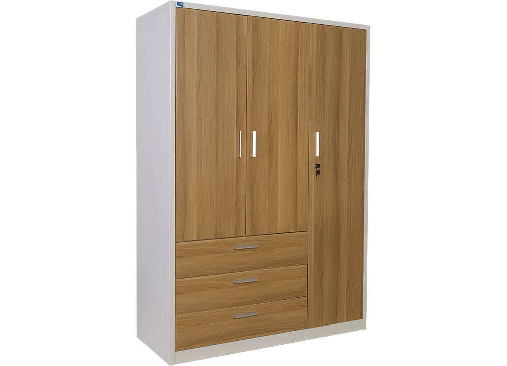 Tủ gia đình cao cấp sử dụng chất liệu khung thép kết hợp với cánh gỗ công nghiệp phủ Melamine.