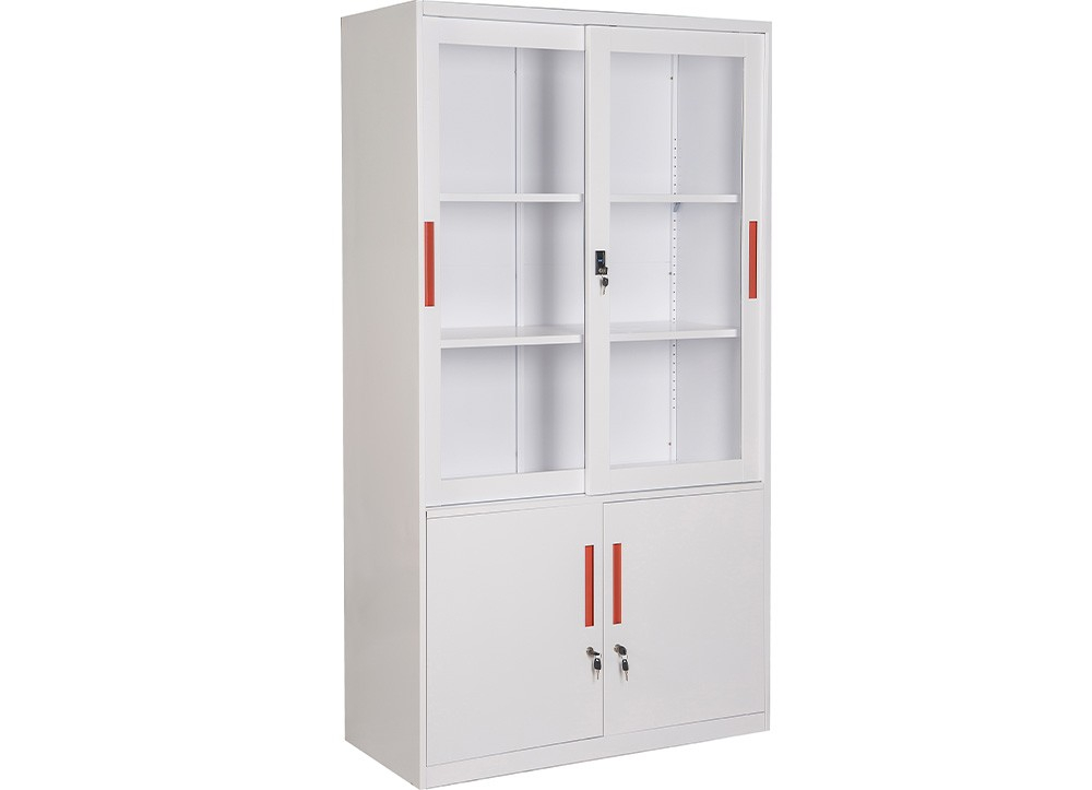 Tủ sắt sơn tĩnh điện màu trắng, tay nắm âm màu cam.