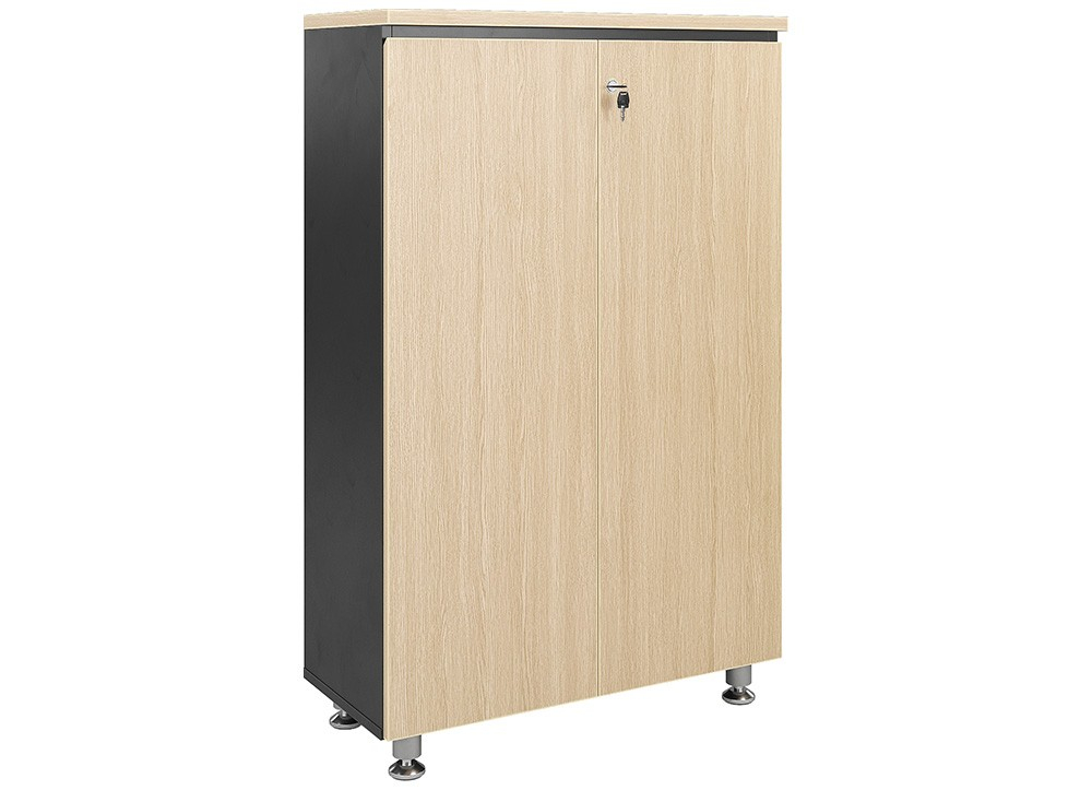 Tủ tài liệu gỗ melamine cánh mở, có 3 khoang. Tủ sử dụng tay nắm vát cạnh và có khóa.