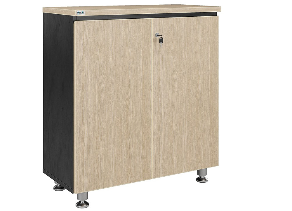 Tủ tài liệu thấp gỗ melamine có 2 cánh mở và 2 khoang, sử dụng tay nắm vát cạnh và có khóa.