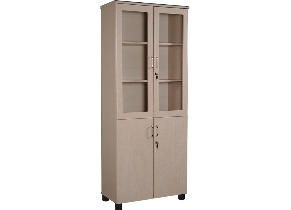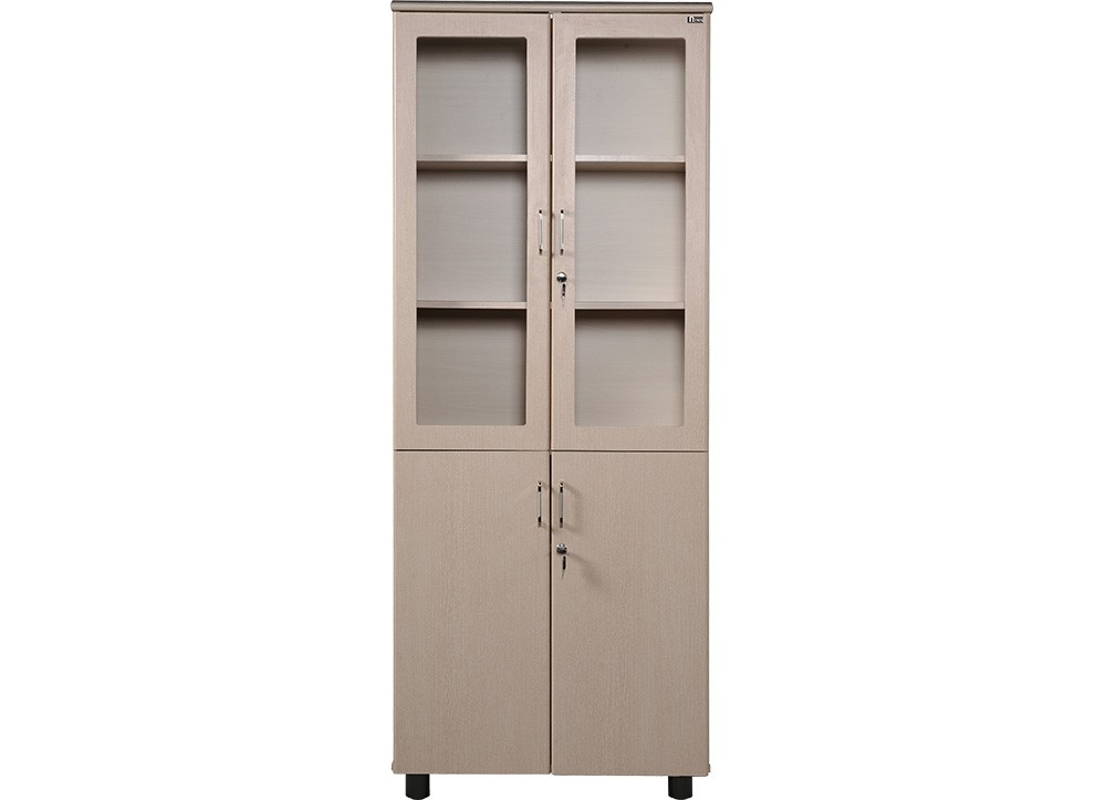 Tủ tài liệu 2 khoang, phía trên là 2 khoang cánh khung kính để tài liệu, phía dưới là hai khoang cánh mở.