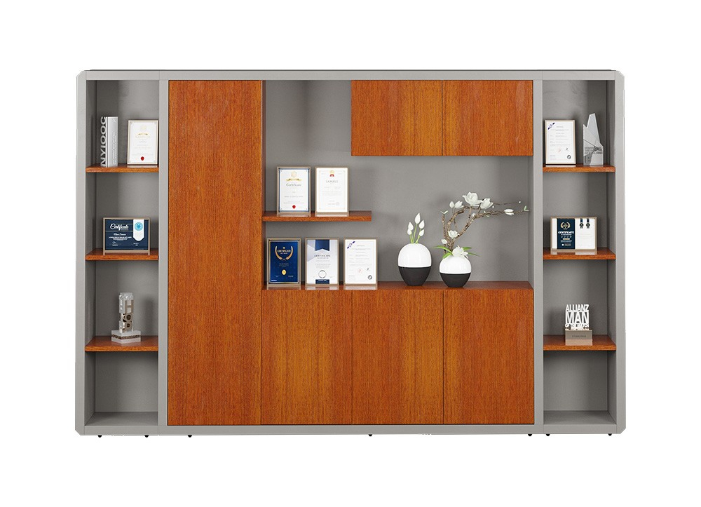 Tủ lãnh đạo chất liệu verneer kết hợp sơn ghi. Tủ có khoang treo áo và các đợt để tài liệu decor trang trí.