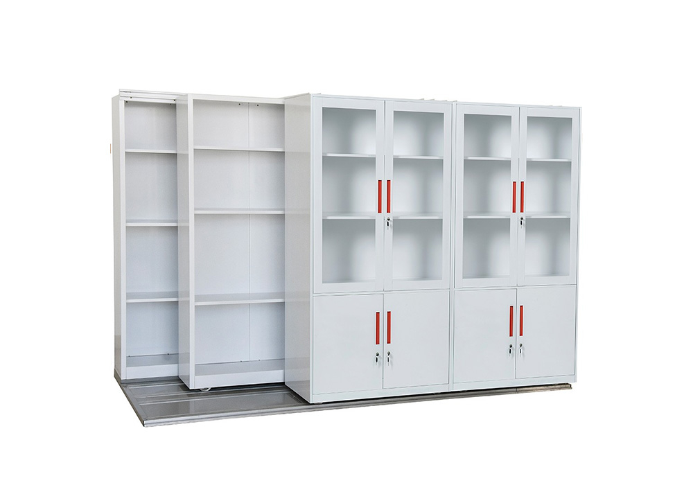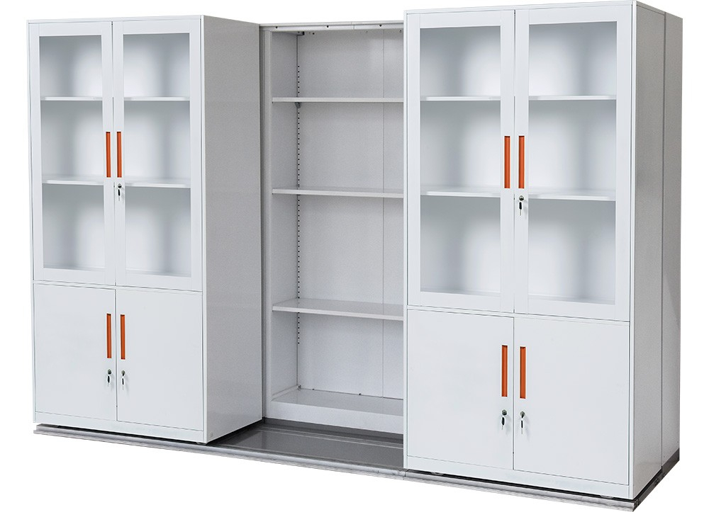 Tủ thư viện di động sử dụng hệ thống ray trượt nhằm tiết kiệm không gian, tủ gồm 3 lớp: